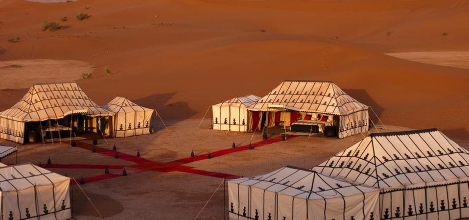 After breakfast we will depart to Todra Gorges, through the vast palm grove of Tinerhir, where agriculture stand out, date palms, crafts. Later we will arrive to the Gorges. Here we can see the spectacular landscape that for thousands of years has been forged thanks to the river that crosses it. Then we will drive to Merzouga, where you will leave your luggage at the auberge and go to the desert by camel. Once in the Haima, you will have dinner and hear the drums echoing in the desert night and lie down in the tent.