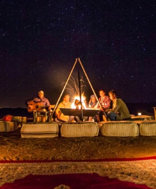 After breakfast continue your journey. Pass a few Berber villages along the way to Tinjdad and Erfoud, from where you will feel the beginning of the Saharan oasis of Tafilalet. Continue to Rissani and Merzouga desert, from where you will ride camels to the sand dunes. You will spend this night in an equipped desert camp with drum music in the middle of the Sahara desert. You will climb a high dune to watch the sunset. Traditional Berber dinner is served under the stars. You will spend the night in a luxury tent.