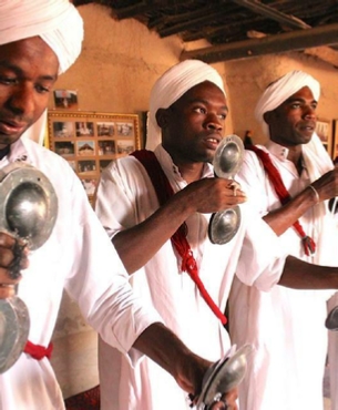 Gnawa music is a rich repertoire of ancient African Islamic spiritual religious songs and rhythms. Its well preserved heritage combines ritual poetry with traditional music and dancing. The music is performed at 'Lila's', entire communal nights of celebration, dedicated to prayer and healing, guided by the Gnawa Maalem and his group of musicians and dancers. Though many of the influences that formed this music can be traced to sub-