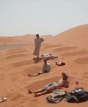 Once sufficiently hot, the Sand bath therapy person lies in the hole and is “buried” in sand leaving the head free.The Merzouga sand bath therapy person spends typically around 15 to 30 minutes in the bath. During the sand bath we provide full assistance.
